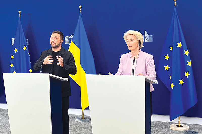 Tổng thống Ukraine Zelensky và Chủ tịch EC Von der Leyen tổ chức họp báo hôm 17-8. Ảnh: Getty Images