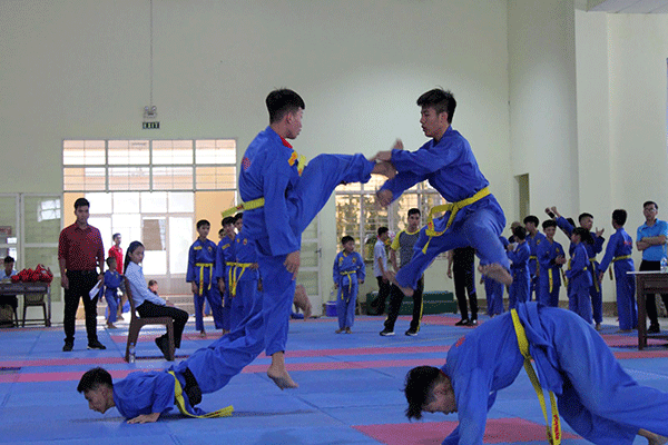 Vovinam là một trong những môn thế mạnh của thể thao Cần Thơ. Trong ảnh: Các võ sĩ thi đấu tại giải vô địch Vovinam thành phố năm 2020.