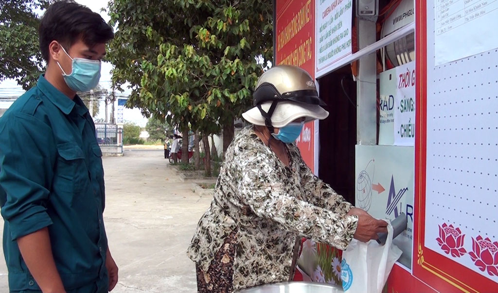 Người có hoàn cảnh khó khăn đến nhận gạo tại ATM xã Hòa Khánh Đông