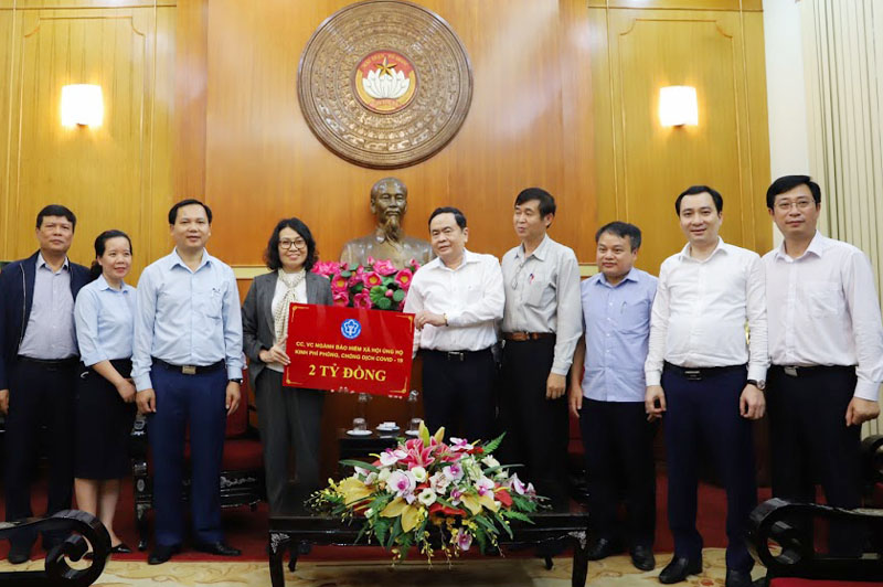 | Chủ tịch Uỷ ban Trung ương MTTQ Việt Nam Trần Thanh Mẫn tiếp nhận tiền ủng hộ từ cán bộ, công chức, viên chức ngành Bảo hiểm xã hội Việt Nam |