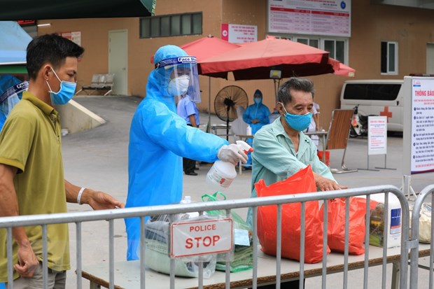 Bệnh viện E (Hà Nội) ngày đầu thực hiện cách ly. (Ảnh: Thành Đạt/TTXVN)
