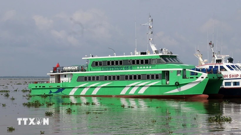 | Tàu cao tốc Lightning 68 đưa vào hoạt động trên tuyến biển Rạch Giá-Phú Quốc. (Ảnh: Lê Huy Hải/TTXVN) |