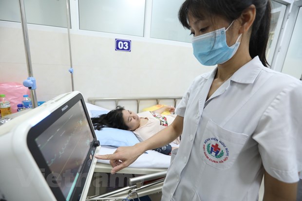 Chăm sóc, điều trị cho bệnh nhân mắc sốt xuất huyết. (Ảnh: PV/Vietnam+)