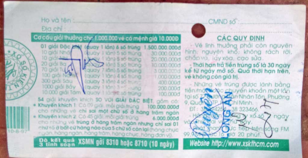 Cách nay 1 tuần lễ, ông có đổi vé số của “người trúng” giải 6 – trúng 400 ngàn đồng, vé số đài TP.HCM xổ ngày 29/2/2016. Đại lý xác nhận vé số trúng giải này, có xác nhận của đại lý và chữ ký của ông P.