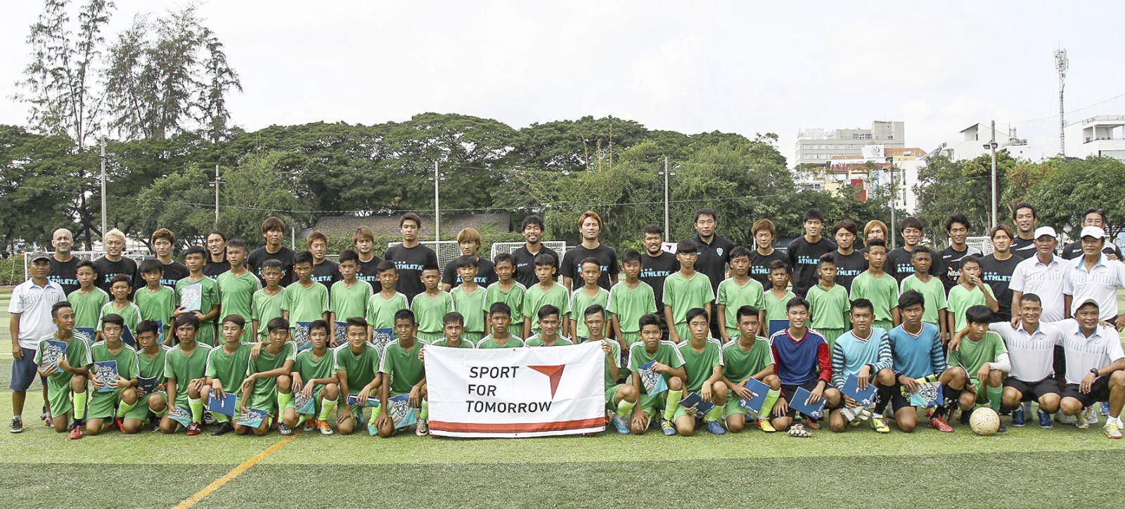 Các cầu thủ trẻ và năng khiếu Cần Thơ cùng các HLV Phòng Đào tạo bóng đá trong buổi giao lưu với cầu thủ CLB Avispa Fukuoka (Nhật Bản) năm 2016. Ảnh: NGUYỄN MINH