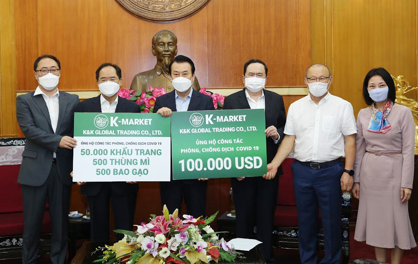 Chiều 3/4, Bí thư Trung ương Đảng, Chủ tịch Uỷ ban Trung ương Mặt trận Tổ quốc (MTTQ) Việt Nam Trần Thanh Mẫn đã tiếp nhận ủng hộ từ Công ty K-Market 100.000 USD cùng 50.000 khẩu trang, 500 thùng mì, 500 bao gạo. Đây là lần thứ hai Đại sứ Hàn Quốc Park Noh - Wan cùng doanh nghiệp Hàn Quốc tại Việt Nam đến chung tay cùng Mặt trận phòng, chống dịch COVID-19.