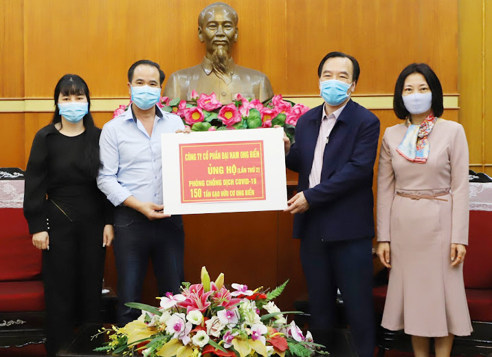 | Phó Chủ tịch Uỷ ban Trung ương MTTQ Việt Nam Ngô Sách Thực tiếp nhận ủng hộ từ Công ty Cổ phần Đại Nam Ong Biển . |