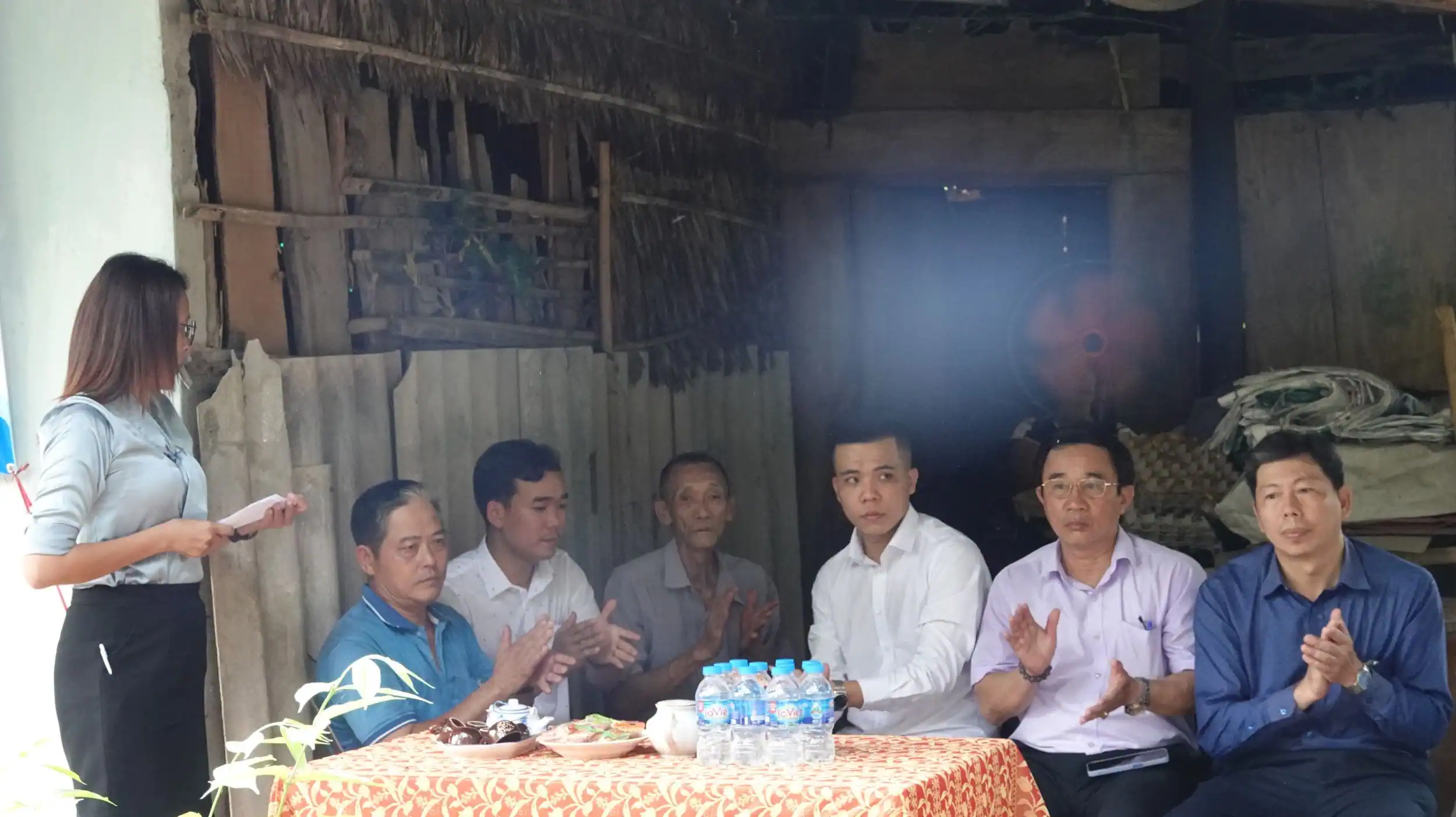 Lãnh đạo phường Long Tuyền và các nhà tài trợ trò chuyện, động viên ông Nguyễn Hữu Thể (bìa phải).