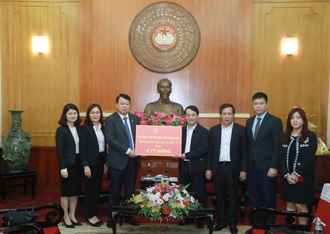 | Phó Chủ tịch - Tổng Thư ký Hầu A Lềnh tiếp nhận ủng hộ từ Tổng Công ty Đầu tư và Kinh doanh vốn Nhà nước (SCIC). |