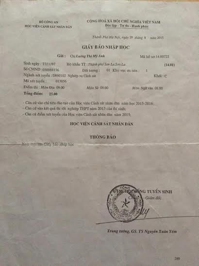 Tối ngày 24/9, Dân trí tiếp tục nhận được thư của em Bùi Quang Minh (Kon Tum) chia sẻ về việc có giấy báo trúng tuyển nhưng không được nhập học vào trường ĐH An Ninh Nhân dân vì lý lịch.