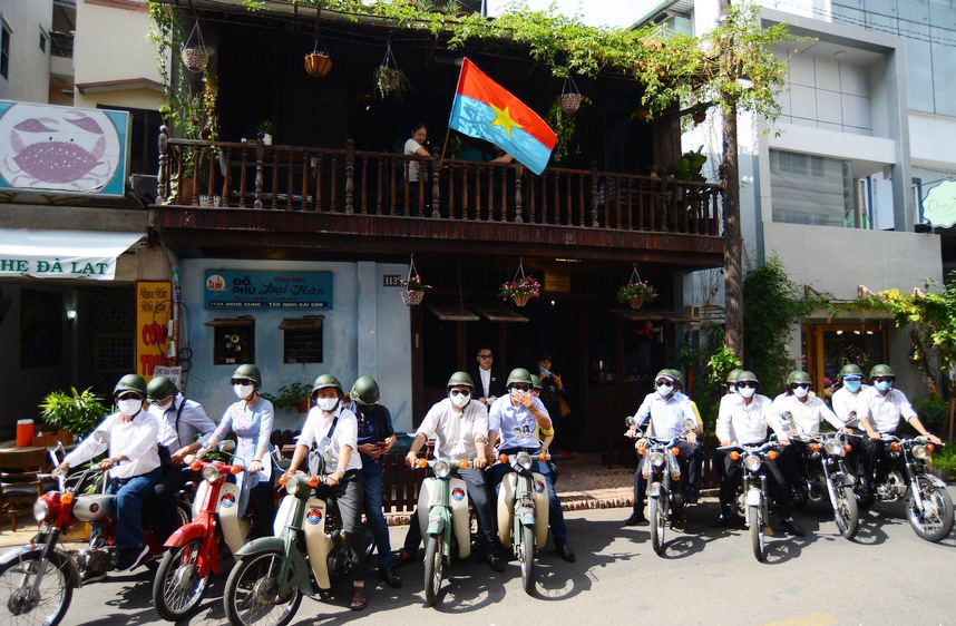 | Du khách được trải nghiệm hành trình bằng xe Honda 67 - chiếc xe đã từng được các chiến sĩ Biệt động Sài Gòn trước đây sử dụng. Ảnh: Quang Định |
