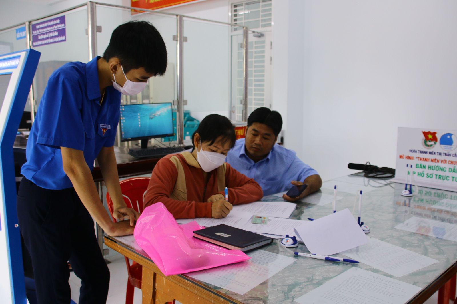 Đoàn viên, thanh niên huyện Cần Giuộc hướng dẫn người dân cách nộp hồ sơ trực tuyến