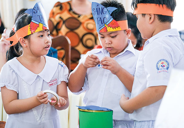 Học sinh Trường Tiểu học Ngô Quyền hào hứng với tiết học lồng ghép giáo dục STEM.