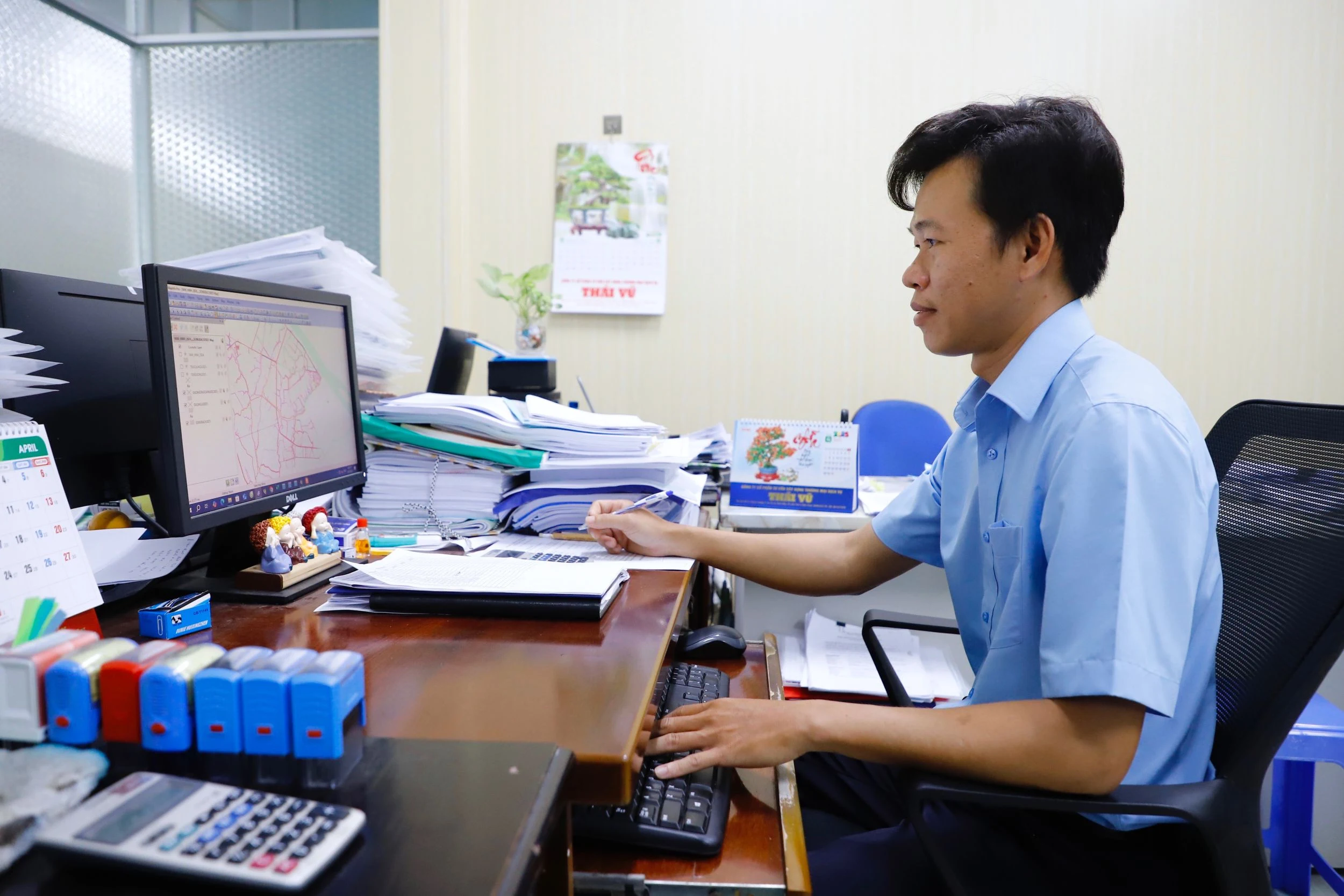 Anh Nguyễn Văn Quốc, kỹ sư môi trường, Phòng Kỹ thuật Công ty CP Cấp nước Trà Nóc - Ô Môn nỗ lực nghiên cứu, học tập, thực hiện nhiều sáng kiến. Ảnh: KIẾN QUỐC