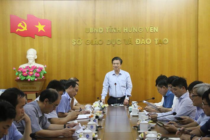 | Thứ trưởng Nguyễn Hữu Độ phát biểu tại buổi làm việc với Sở GD&ĐT tỉnh Hưng Yên. Ảnh: TT |