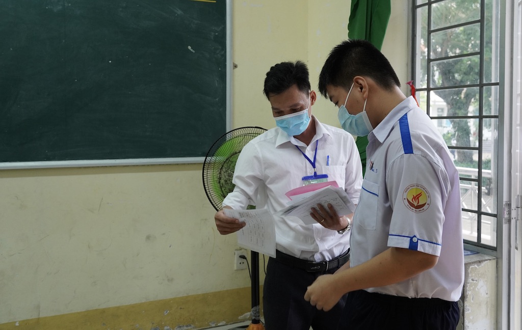 Thí sinh được cán bộ coi thi kiểm tra thông tin khi vào phòng thi