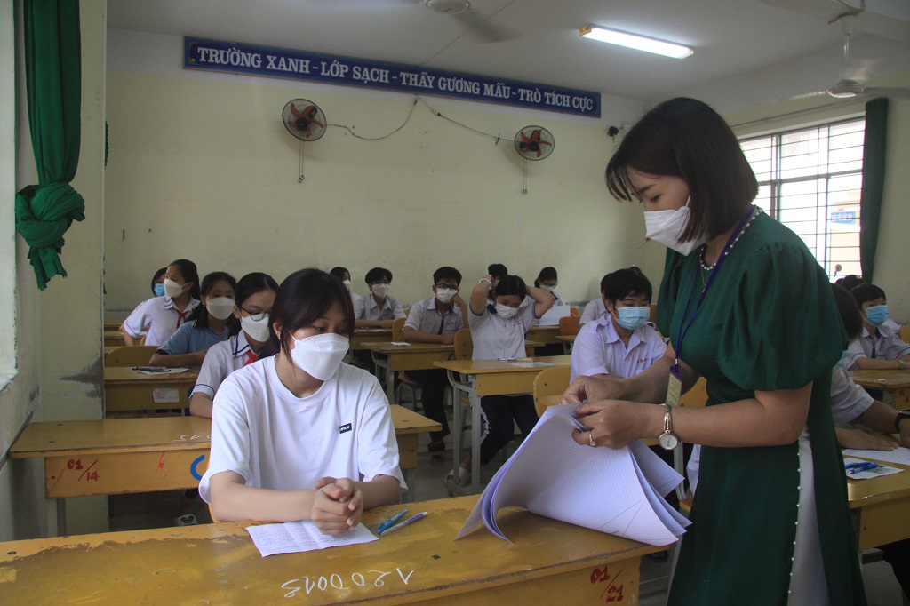 Đến điểm thi, thí sinh đan xen tâm trạng hồi hộp, lo lắng nhưng cũng quyết tâm, bình tĩnh làm bài để đạt kết quả tốt, đậu vào lớp 10 trường THPT mình mong muốn.