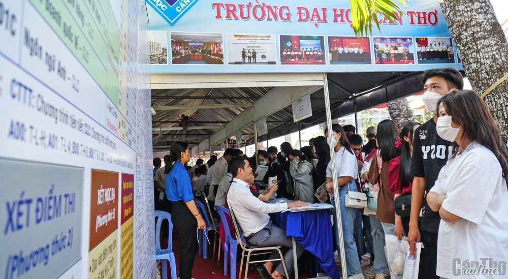 Học sinh tìm hiểu thông tin tuyển sinh 2023 của Trường ĐH Cần Thơ - Ảnh: B.Ngọc
