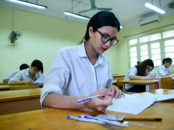 Thí sinh làm bài thi môn Ngữ Văn. (Ảnh: Minh Sơn/Vietnam+)