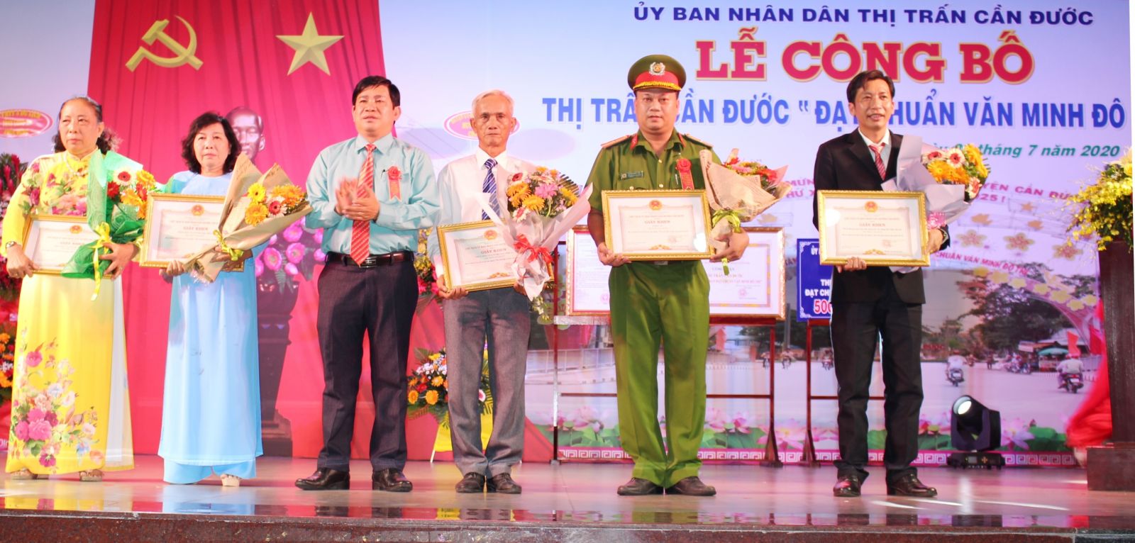 Nhân dịp công nhận thị trấn đạt chuẩn văn minh đô thị, UBND huyện Cần Đước, UBND thị trấn tặng giấy khen cho 12 tập thể và 26 cá nhân đạt thành tích tiêu biểu, có những đóng góp tích cực trong quá trình xây dựng thị trấn đạt chuẩn văn minh đô thị./.