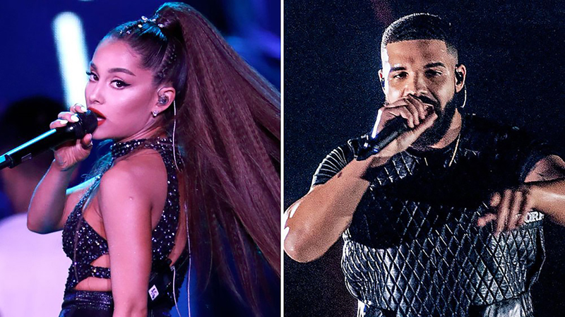 Drake (ảnh, phải) và Ariana Grande, hai ngôi sao thành công nhất trong mảng nhạc trực tuyến năm 2018.