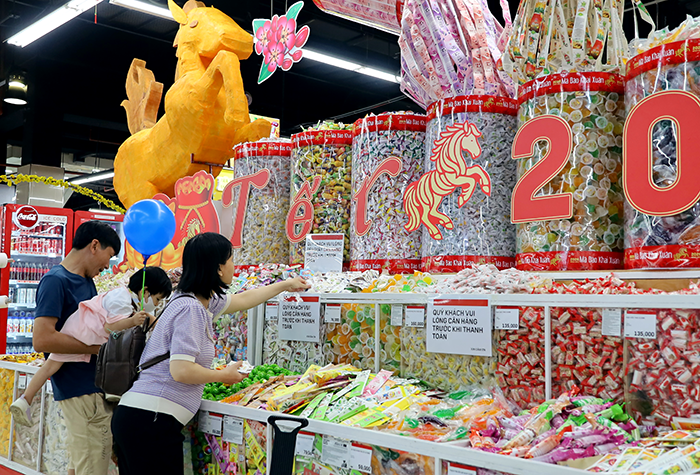 Nhu cầu tiêu dùng trong nước gia tăng trong các dịp lễ, Tết là những yếu tố thúc đẩy tăng trưởng ngành thương mại, dịch vụ trong quý I năm 2026. Trong ảnh: Khách mua sắm hàng hóa Tết tại siêu thị LOTTE Mart Cần Thơ.