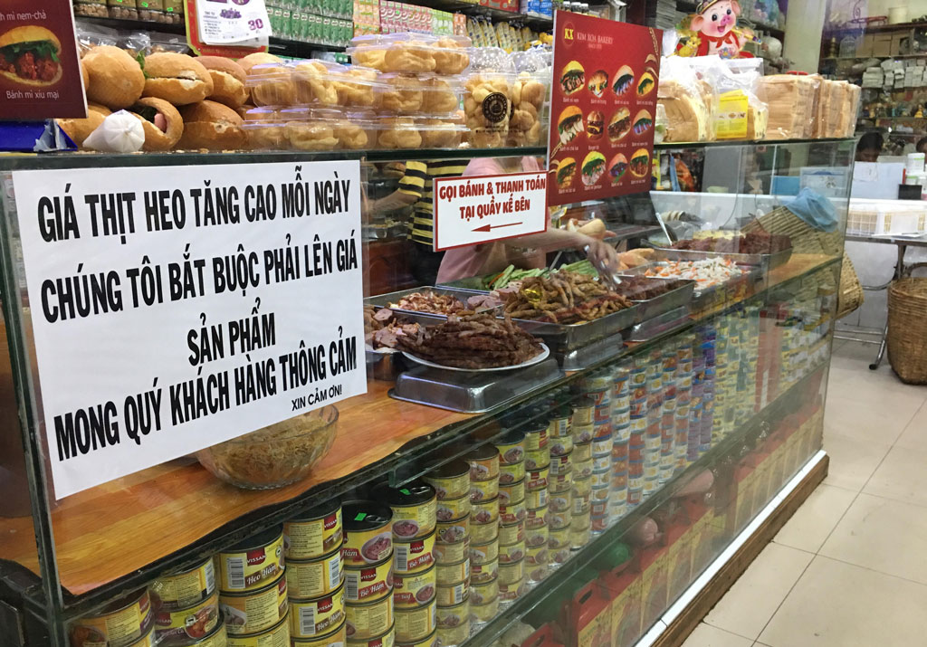 Các loại thực phẩm chế biến từ thịt heo được bán tăng giá, không ít khách hàng thông cảm và chấp nhận. Thế nhưng, thời gian gần đây, nhiều loại thực phẩm khác cũng “té nước” ăn theo. Chị Minh Hoa - lao động làm việc cho một cửa hàng ăn lương thời vụ, chia sẻ: “Mỗi sáng, tôi thường dậy sớm hâm cơm nguội còn dư ngày hôm trước để ăn lót dạ, tuy nhiên, lâu lâu cũng đổi món bằng thực phẩm chay như bánh ướt, bún xào hoặc bún bì. Mặc dù là các món ăn chay nhưng các chủ quán này đều đã tăng giá bán từ 2.000-5.000 đồng/món. Hầu hết chủ quán đều giải thích tăng giá do nhiều loại thực phẩm đồng loạt tăng giá.