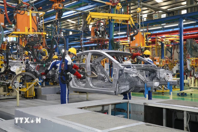 Dây chuyền sản xuất ôtô của Hyundai Thành Công. (Ảnh: Đức Phương/TTXVN)