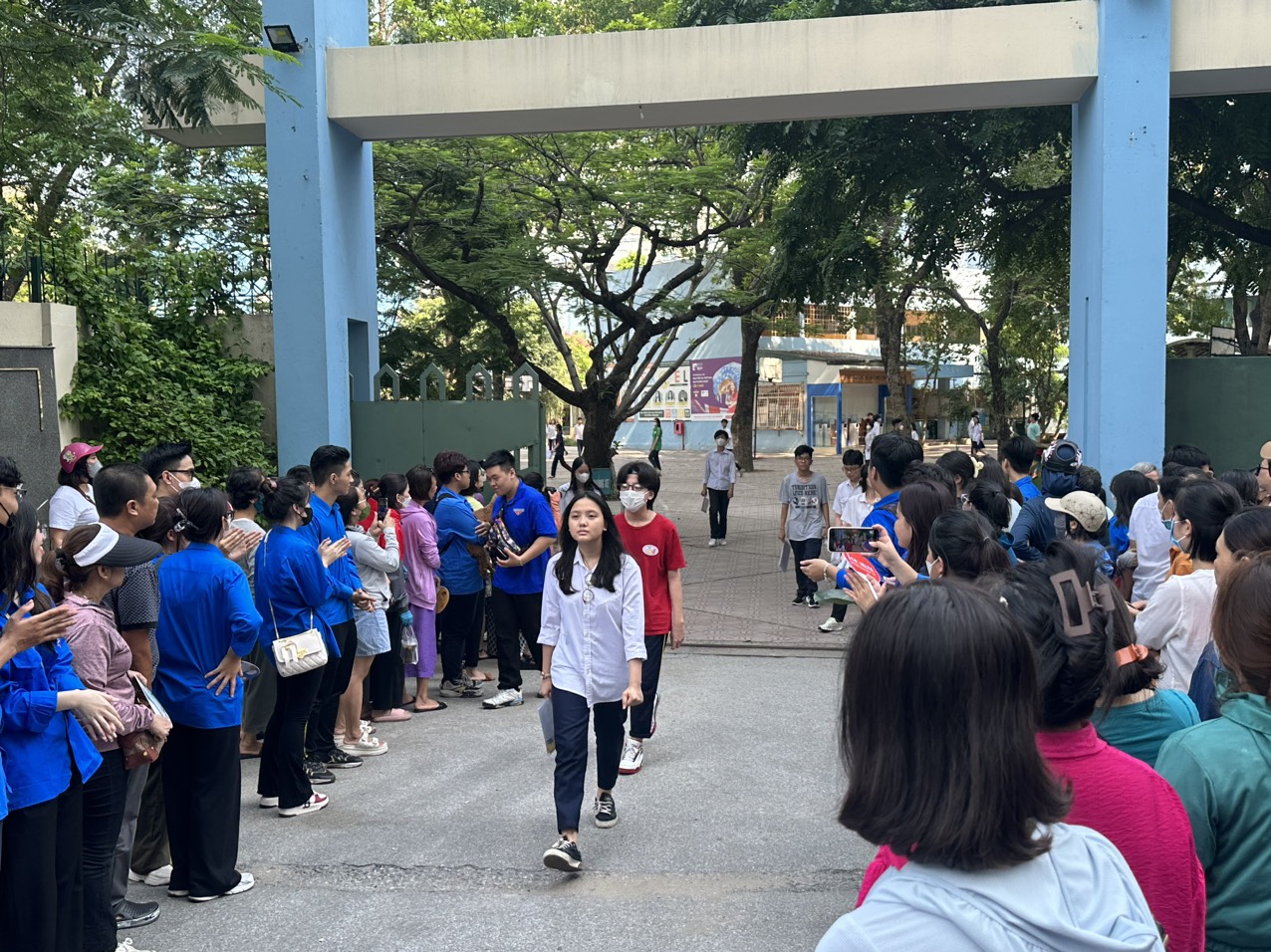 | Nhiều thí sinh ra khỏi phòng thi với tâm trạng vui vẻ, phấn chấn vì kết quả bài làm khá tốt. Ảnh: VA |