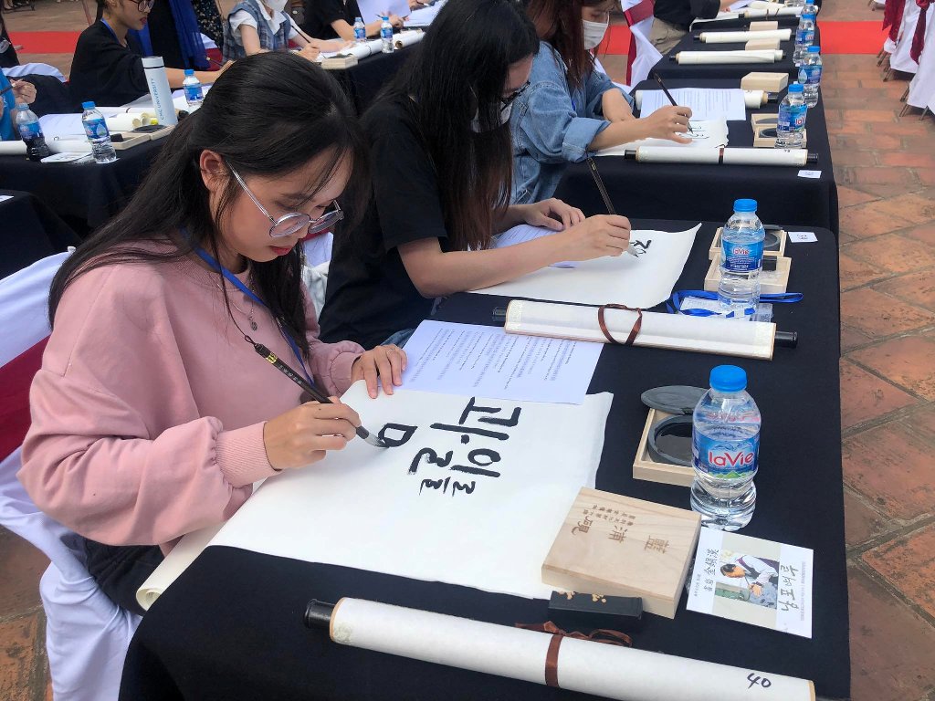 Cuộc thi là màn tranh tài của hơn 100 thí sinh, những người yêu nghệ thuật thư pháp, sinh viên khoa tiếng Hàn đến từ các trường đại học của Việt Nam. Toàn bộ vật liệu để thể hiện bài thi như giấy, bút lông, mực, nghiên đều được mang tới từ Hàn Quốc.