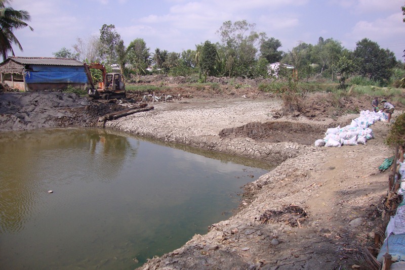 | Người dân Đồng bằng sông Cửu Long dùng mọi biện pháp để chắt chiu giữ lấy nguồn nước ngọt cạn kiệt. (Ảnh: K.V) |