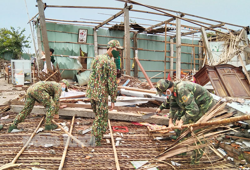 | Lực lượng vũ trang giúp dân sửa lại nhà do ảnh hưởng của dông lốc trên địa bàn tỉnh Bến Tre (Nguồn ảnh: baodongkhoi.vn) |