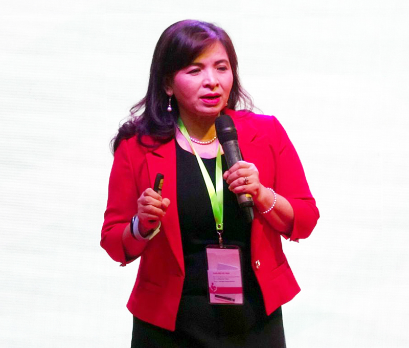 Bác sĩ Đỗ Thị Ngọc Diệp báo cáo tại Hội nghị Sản phụ khoa Cần Thơ lần III hồi trung tuần tháng 4 vừa qua. Ảnh do Bệnh viện Phụ sản Cần Thơ cung cấp.