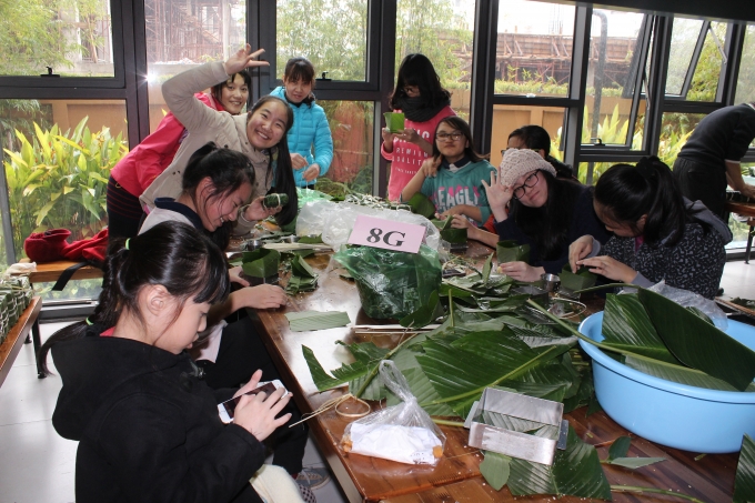 Các em học sinh được chia thành các nhóm nhỏ, thực hành gói bánh chưng cùng với các thầy cô và một số anh chị hướng dẫn. Trong quá trình gói bánh, các thầy cô chỉ bảo và giải thích ý nghĩa của từng loại thực phẩm được dùng để gói bánh chưng, cách gói và buộc lạt bánh sao cho thật chắc.