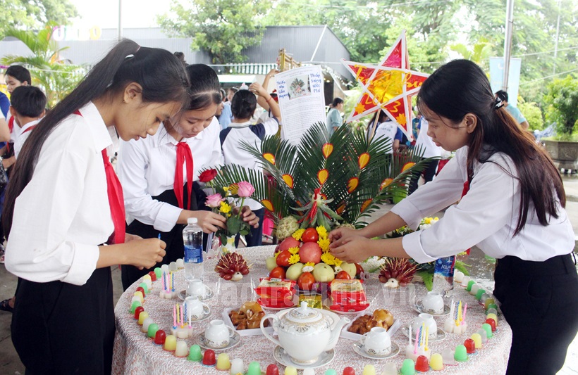 Còn học sinh Lê Nguyễn Thùy Dương, lớp 8/3, Trường THCS Long Sơn, huyện Cầu Ngang phấn khởi khi lần đầu tiên em được tham gia nhiều hoạt động, tham quan Đền thờ Bác Hồ, được tham gia các trò chơi, làm lồng đèn và thích nhất là trang trí mâm cỗ đón trăng. Em hy vọng sẽ có dịp tham gia những hoạt động như vậy nữa và bản thân sẽ cố gắng học tốt hơn, xứng đáng là “cháu ngoan Bác Hồ”.