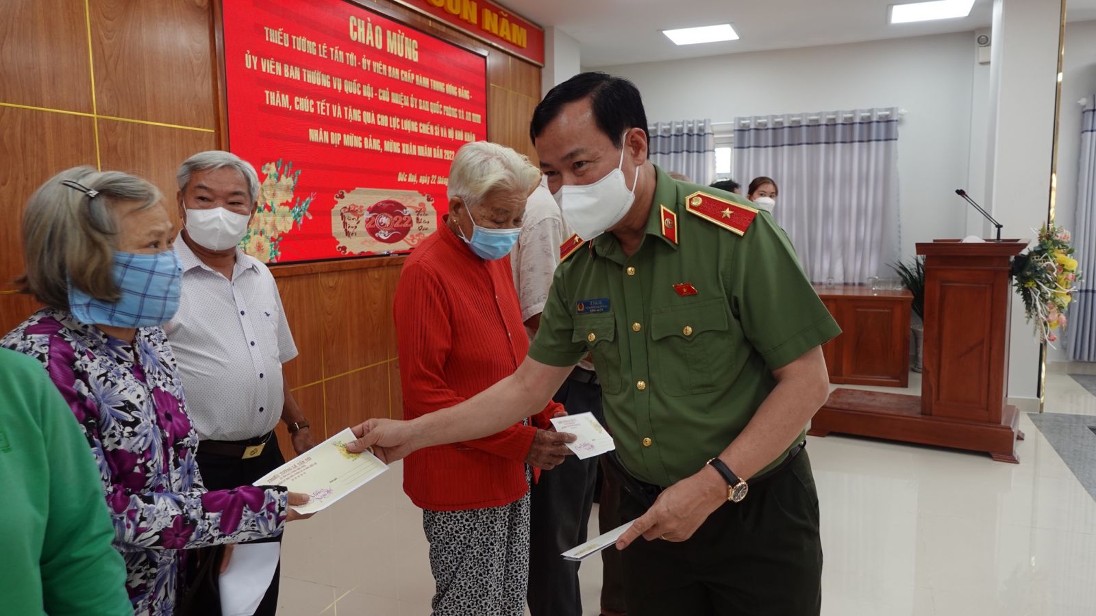 Thiếu tướng – Lê Tấn Tới ân cần thăm hỏi sức khỏe, điều kiện kinh tế gia đình, công việc chuẩn bị vui xuân đón tết và động viên người dân trên địa bàn huyện Cần Đước nỗ lực vượt qua khó khăn, thực hiện nghiêm túc các quy định về công tác phòng, chống dịch để bảo vệ sức khoẻ và có những ngày tết vui tươi an toàn. Tại đây, Thiếu tướng Lê Tấn Tới trao tặng 100 phần quà cho 100 gia đình có hoàn cảnh khó khăn.