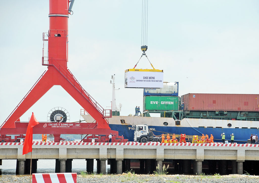 Đặc biệt, trong chuỗi liên kết mang đậm dấu ấn của ngành nông nghiệp Việt, Cảng Quốc tế Long An đóng vai trò khá đặc biệt, một mắc xích trong chuỗi giá trị. Đây là đơn vị thực hiện các dịch vụ logistics cho xuất khẩu, đáp ứng các quy định và tiêu chuẩn quốc tế về thời gian, bảo quản thịt gà trong quá trình di chuyển. Cảng Quốc tế Long An thực hiện tất cả công đoạn từ vận chuyển, thủ tục hải quan, cước vận chuyển quốc tế tại nhà máy chế biến ở Việt Nam đến thực hiện thủ tục, vận chuyển, phân phối đến nhà máy, các điểm phân phối tại Nhật Bản. Để tiếp tục hoàn thiện dịch vụ logistics, Cảng Quốc tế Long An tất bật thực hiện cầu Cảng số 2 nhằm tiếp nhận tàu có tải trọng trên 50.000 DWT; phục vụ nhu cầu đóng hàng và xuất, nhập khẩu hàng container của các doanh nghiệp nông sản trong khu vực như gạo, phân bón, thức ăn gia súc.
