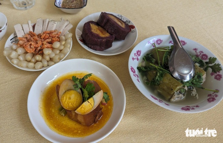 Người Nam Bộ ăn Tết khó thể thiếu thịt kho hột vịt, củ kiệu, bánh tét, canh khổ qua... - Ảnh: LINH ĐOAN