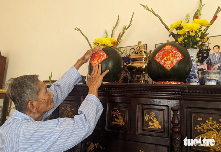 Những ngày cuối năm, dù sức khỏe yếu nhưng ông luôn để ý chăm chút bàn thờ. Không cần bày vẽ nhiều, chỉ cần đủ cặp dưa hấu, bình bông, dĩa ngũ quả là ông vui.