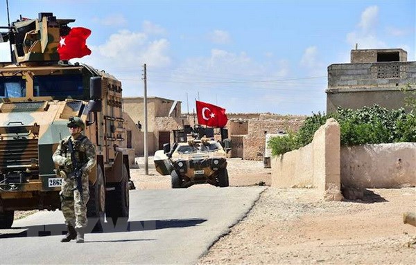 Xe quân sự của quân đội Thổ Nhĩ Kỳ tại Manbij, miền Bắc Syria. (Nguồn: AFP/TTXVN)