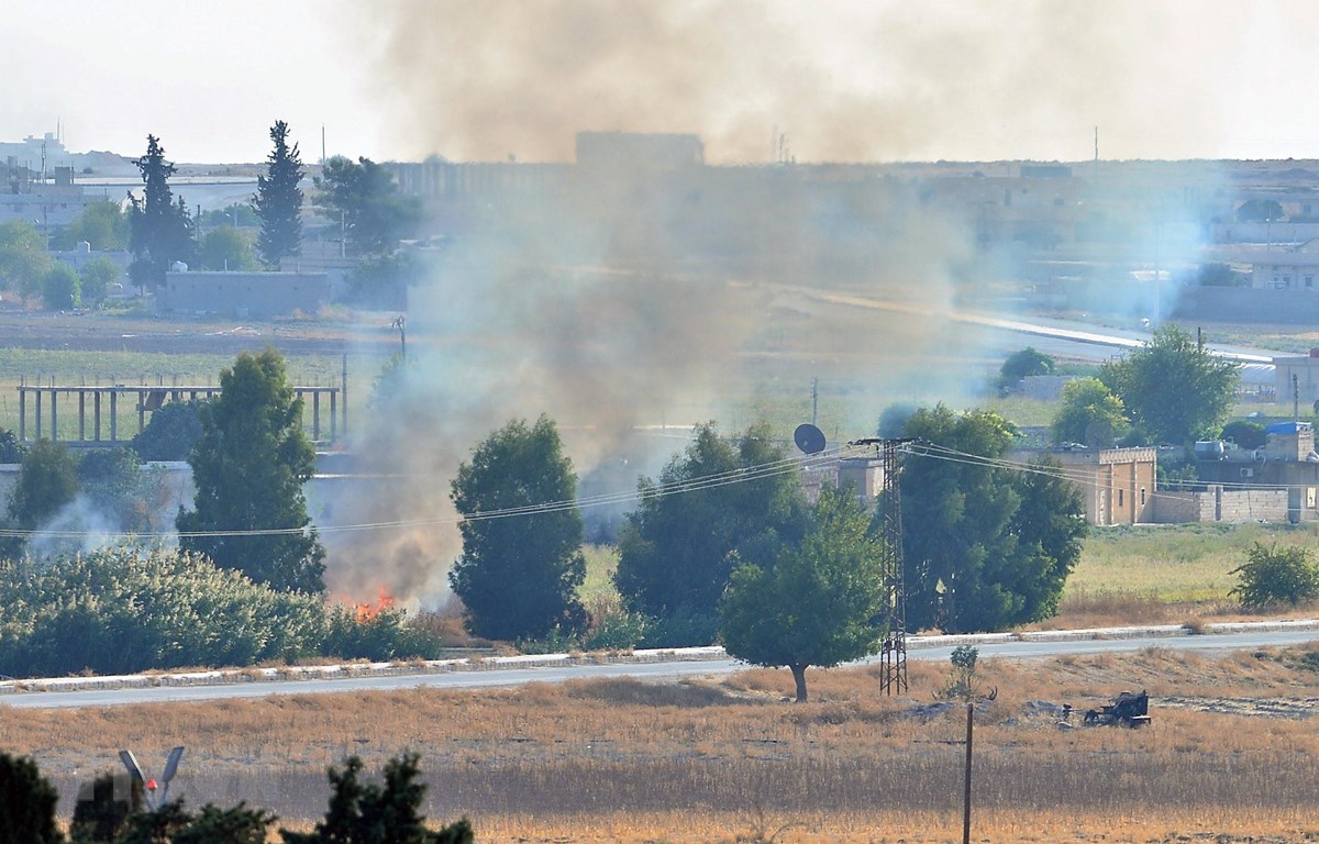 Khói bốc lên sau một cuộc tấn công tại Tal Abyad, Syria, ngày 13/10/2019. (Ảnh: THX/TTXVN)