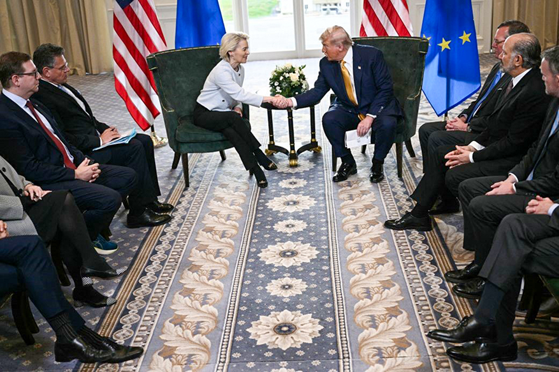 Phát biểu trước báo giới sau cuộc họp với Chủ tịch Ủy ban châu Âu (EC) Ursula von der Leyen tại Scotland, Tổng thống Mỹ Donald Trump khẳng định hai bên đã đạt được một thỏa thuận mà ông mô tả là tốt cho tất cả mọi người. Đây là thỏa luận thương mại mới nhất mà Mỹ đạt được với các đối tác thương mại sau thỏa thuận với Nhật Bản ngày 23-7. Theo đó, thỏa thuận bao gồm mức thuế cơ bản 15% đối với hàng xuất khẩu của EU sang Mỹ, kể cả đối với ngành ô tô quan trọng của khối, hiện đang bị áp thuế 25%. Ngoài việc đầu tư bổ sung 600 tỉ USD vào nền kinh tế Mỹ, EU cũng đồng ý mua “750 tỉ USD năng lượng” từ quốc gia này.