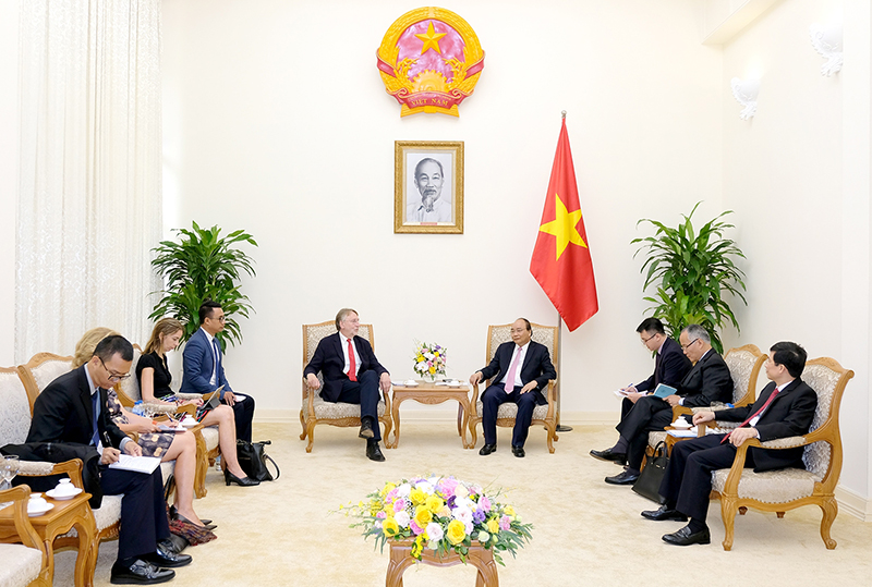 Phát biểu tại buổi tiếp, Thủ tướng Nguyễn Xuân Phúc cho rằng đây là "thời cơ vàng" cho việc ký kết Hiệp định Thương mại tự do EU-Việt Nam (EVFTA) và mong muốn hai bên thúc đẩy quá trình này để sớm ký kết vào cuối năm nay.