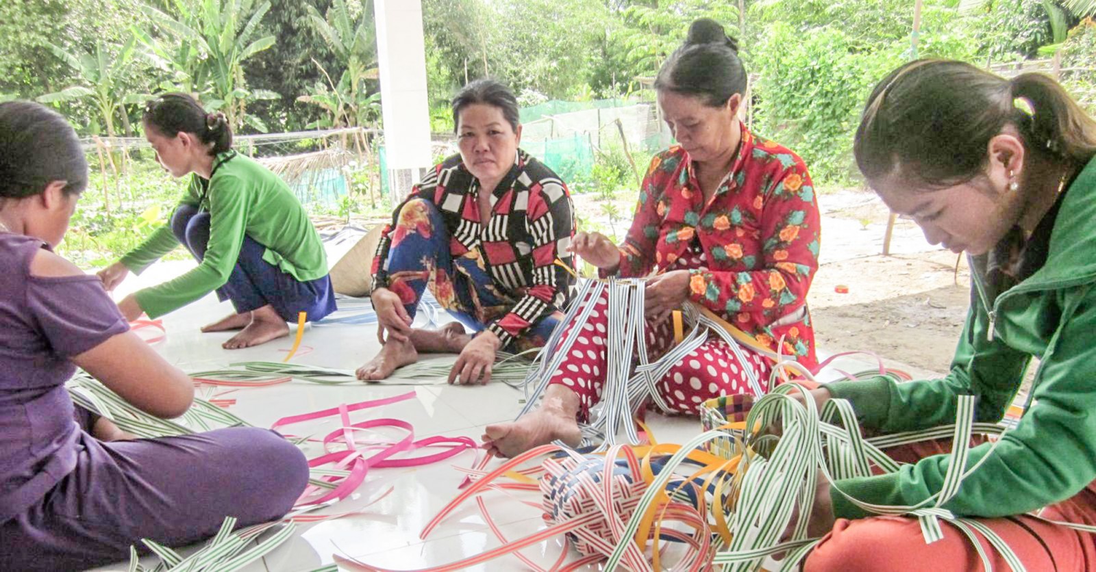 Lớp nghề đan dây nhựa ở xã Trường Thắng. Ảnh: ANH PHƯƠNG