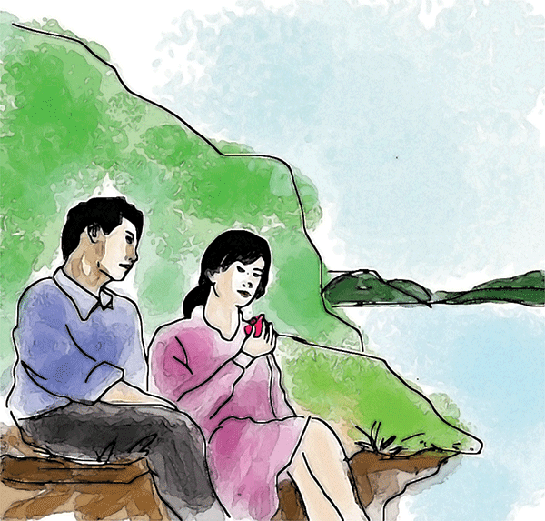 Ðó là một ngọn đồi mà ở đây có thể nhìn thấy biển. Ðó là nơi tôi từng tự nhủ có dịp sẽ đưa Ngân đến và ngỏ lời. Ngân không thắc mắc gì khi tôi dừng xe lại ở con dốc cao, nhìn xuống bên dưới mênh mông biển. Ngân reo trong gió: “Ðẹp quá”. Tôi đưa cho Ngân chiếc hộp nhỏ. Em cầm chiếc hộp có thắt chiếc nơ xinh, nói: “Em mở ra được không?”. Tôi gật đầu. Trong chiếc hộp là thỏi son màu cánh sen. Năm đó Ngân còn nói với tôi: “Khi nào em lớn, anh tặng em một thỏi son nha anh”. Tôi đã lập tức đi mua thỏi son màu cánh sen này. Ðó là lần đầu cũng là lần duy nhất cho đến bây giờ tôi mua một thỏi son tặng cho một người con gái. Rồi tôi nói với em: “Thỏi son này chắc hết hạn rồi. Anh sẽ đưa em đi mua nhiều thỏi son khác”.