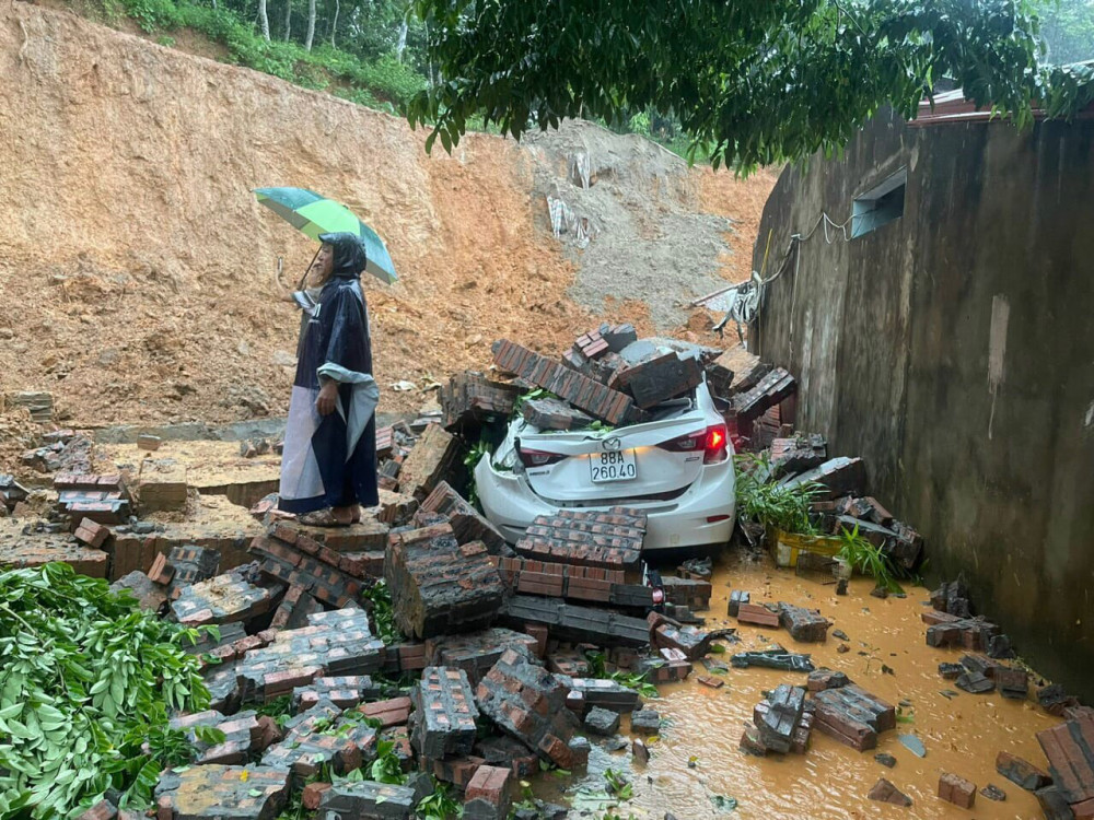 Thời tiết mưa lớn gây sạt lở tại Thái Nguyên chiều 30/7. (Ảnh: Q.CHI)
