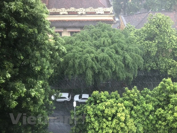Ngày 29/3, Thủ đô Hà Nội nhiều mây, có mưa rào và rải rác có dông. (Ảnh: Lan Phương/Vietnam+)