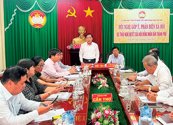 Ban Thường trực Ủy ban MTTQVN TP Cần Thơ vừa tổ chức hội nghị góp ý, phản biện dự thảo nghị quyết của HÐND thành phố về hỗ trợ học phí năm học 2022-2023. Ðại biểu đã góp ý nhiều nội dung thiết thực và bày tỏ sự đồng tình, nhất trí cao vì nghị quyết thể hiện sự quan tâm của thành phố, giúp học sinh có điều kiện đến trường học tập tốt trong năm học 2022-2023, đồng thời giúp cha mẹ học sinh giảm bớt khó khăn về tài chính...
