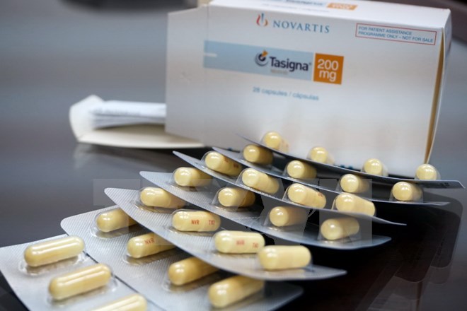 Thuốc Tasigna 200mg đặc trị bệnh bạch cầu mạn dòng tủy. (Ảnh: Phương Vy/TTXVN)