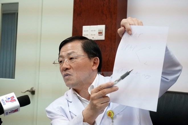 Bác sỹ Phù Chí Dũng, Giám đốc Bệnh viện Truyền máu-Huyết học Thành phố Hồ Chí Minh lý giải việc gần 20.000 viên thuốc đặc trị ung thư hết hạn sử dụng phải tiêu hủy. (Ảnh: Phương Vy/TTXVN)